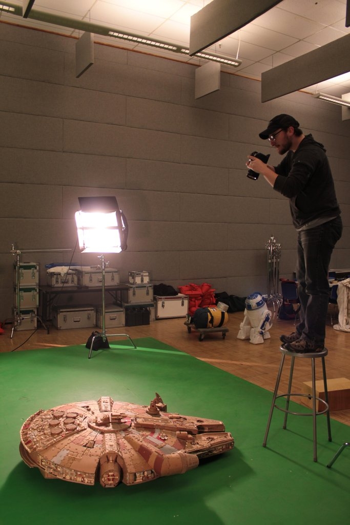 When he was done building, he took it to the Columbus College of Art and Design to do a photo shoot in front of the green screen. He brought along his paper mache R2-D2 for good measure.