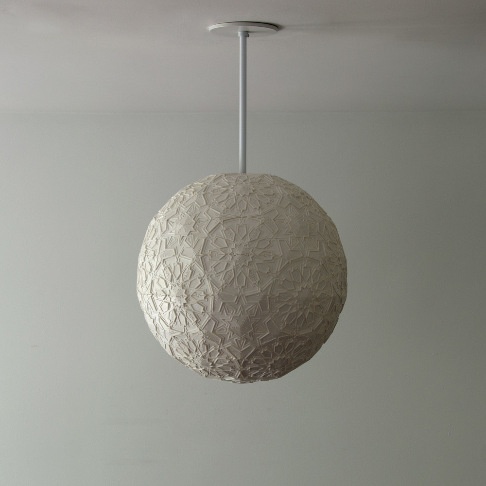 Taking inspiration from Islamic tile patterns, forms found in nature, and images of outer-space, subjects Debbane has investigated through his artwork, the designs have a sculptural quality when unlit reminiscent of ancient relief sculptures. When turned on, the geometric patterns are revealed in a surprising and dramatic way.
