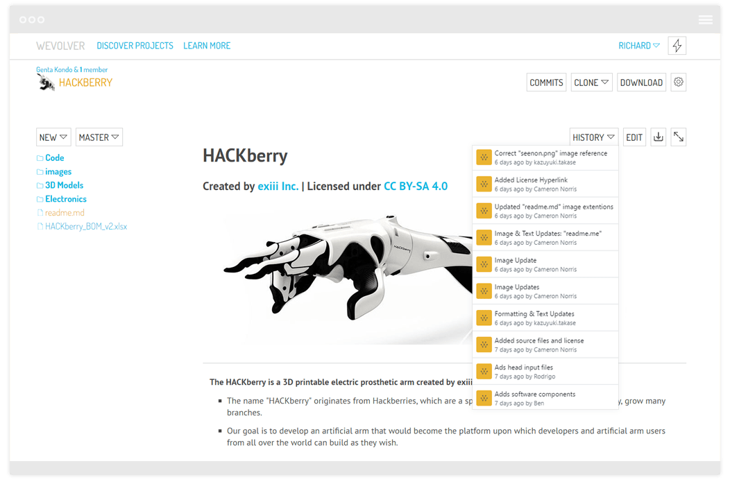 So if it’s an open source project, people can clone a file from Wevolver, have that file on their desktop, make whatever modifications they want and then send those changes back to Wevolver where other team members can access them.