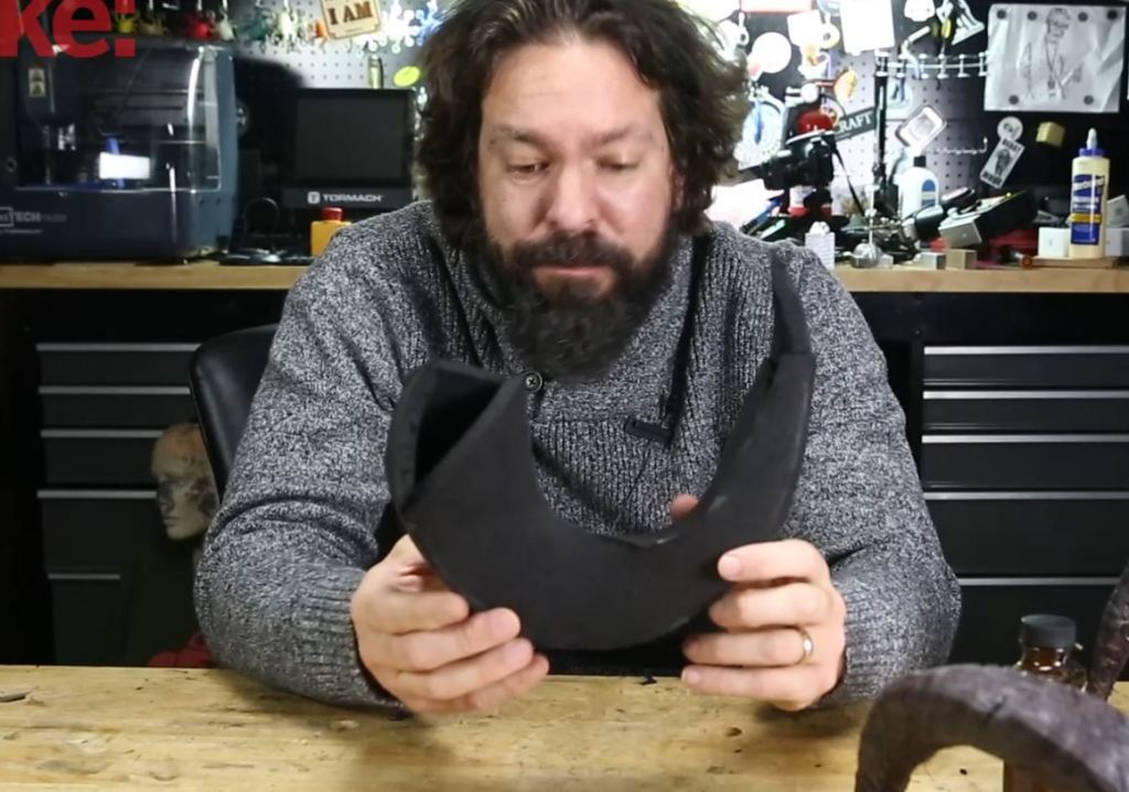 Keep in mind that you’re going to carve this later so it doesn’t need to be perfect. Found a hole? just glue some foam in. You can’t see it in the video but ultimately I cut the tips off and just glued some stacked pieces on there to get the shape to be exactly how I wanted it.
