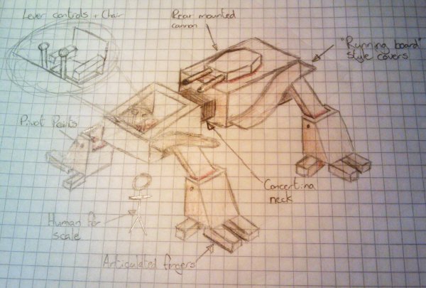 Have a vision for a gigantic robot, but no resources to see your dream enacted? Want a group of hackers to bring it to life, and march it to the UK Maker Faire? Then you might want to check out this competition by the hackerspace NorHACKton. They are looking to build such a beast, and are looking for some design inspiration on what to make: