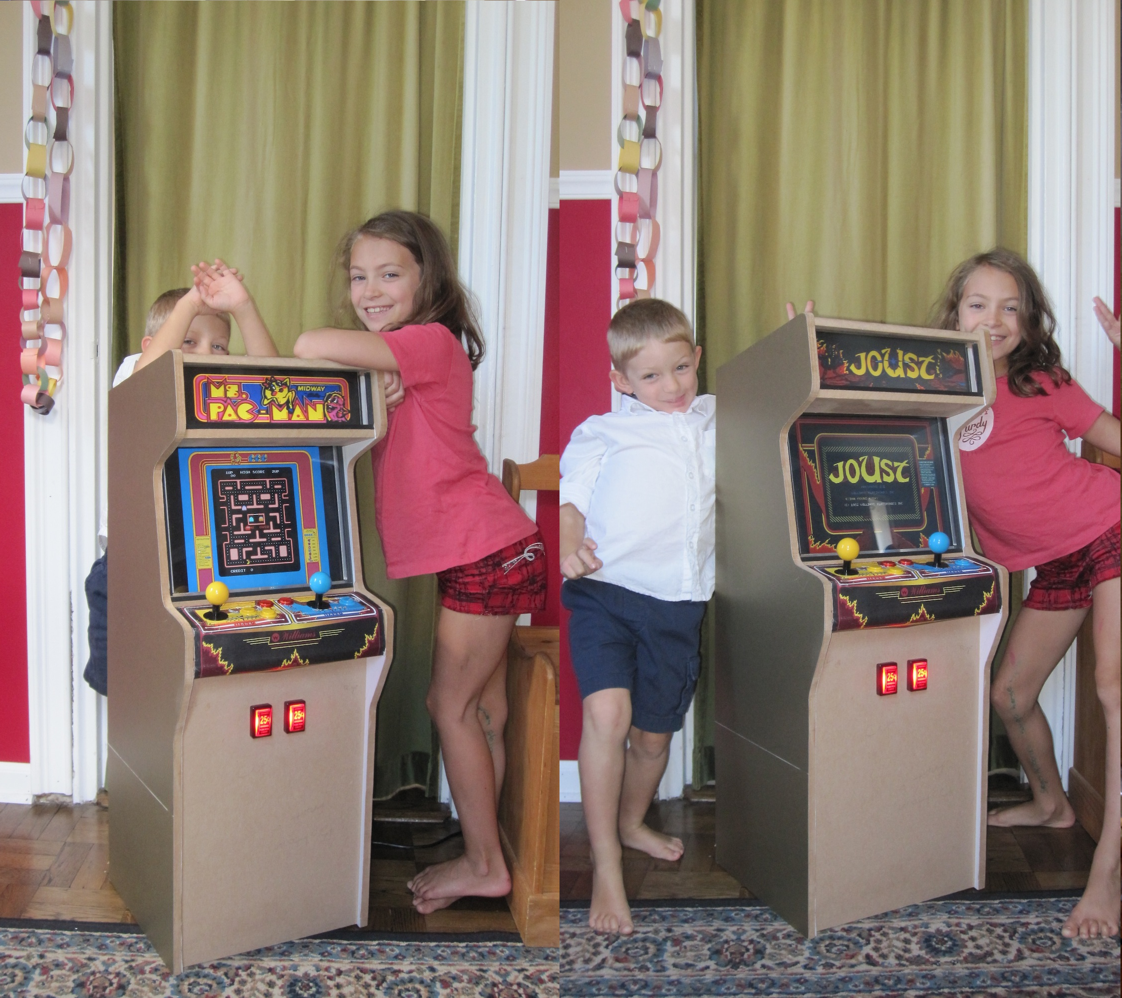 Popcade is a 50% scale MAME cabinet. Unique to this machine is an LCD panel for the marquee area. This allows the marquee graphic to change from game-to-game.