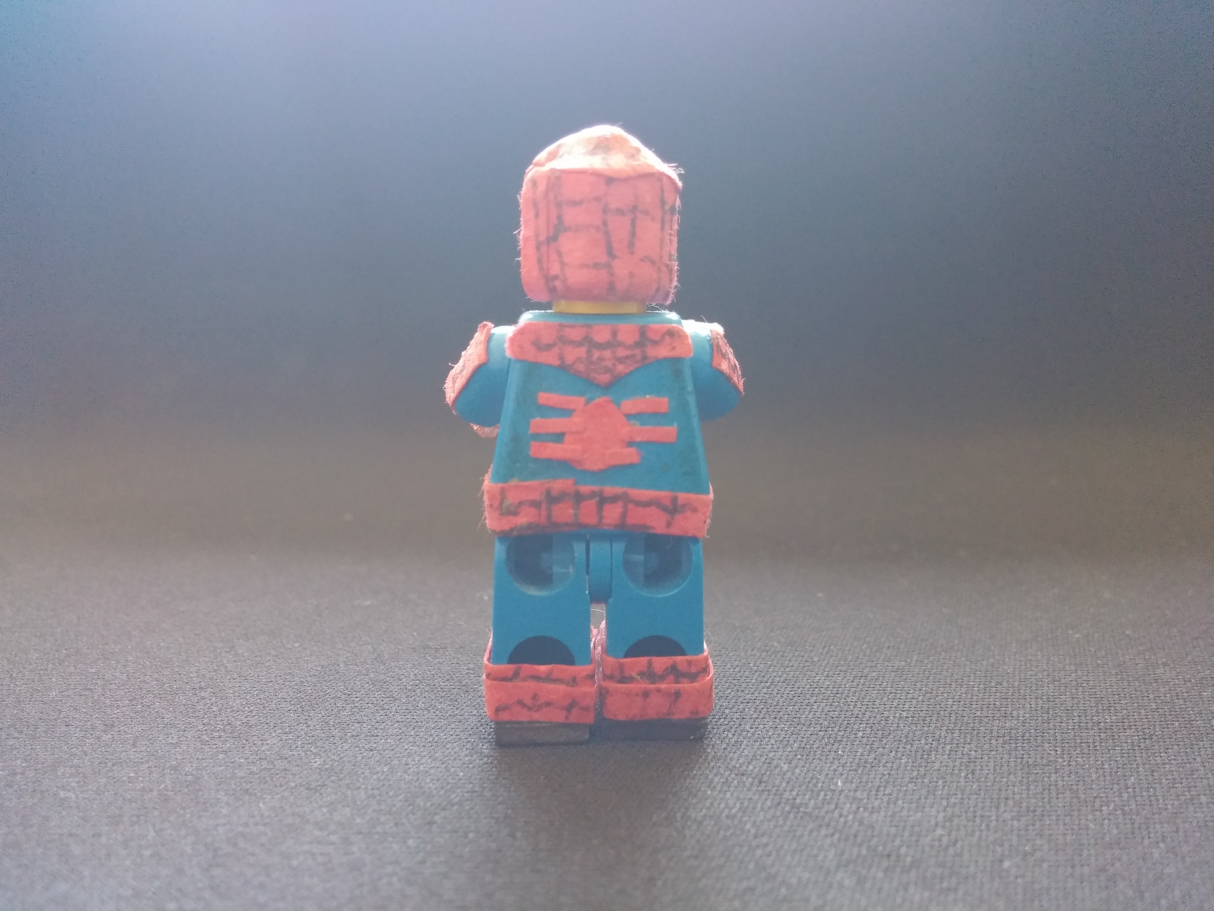 Finally, Fantastic Four’s the Thing. Oh boy … what a great idea: use real rocks from my driveway. I thought I could fit them all together to make it look authentic, but shape fitting was elusive. His face was hidden, and the body was too big for the arms, so I extended it. In the end I abandoned the idea as well as making the Fantastic Four all together. X-Men were way cooler.