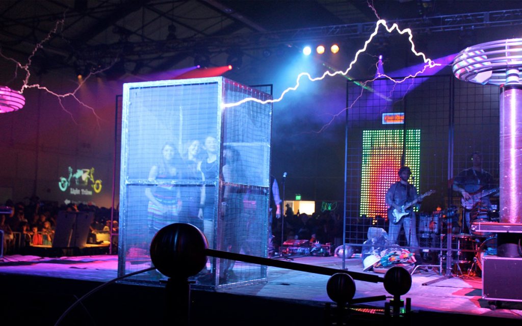 Shortly after, we were contacted by our agent Keith from Geodesic Management. He suggested that we should use our technological powers to create an educational show. To this day, we have been providing edutainment for school-age kids all over the country, on top of other random opportunities that kept us moving forward — Maker Faires, selling Tesla coils to museums, and other custom projects. In 2012, we zapped magician David Blaine with lightning for three days straight. We even electrified a prosthetic leg for “bionic” artist Viktoria Modesta.