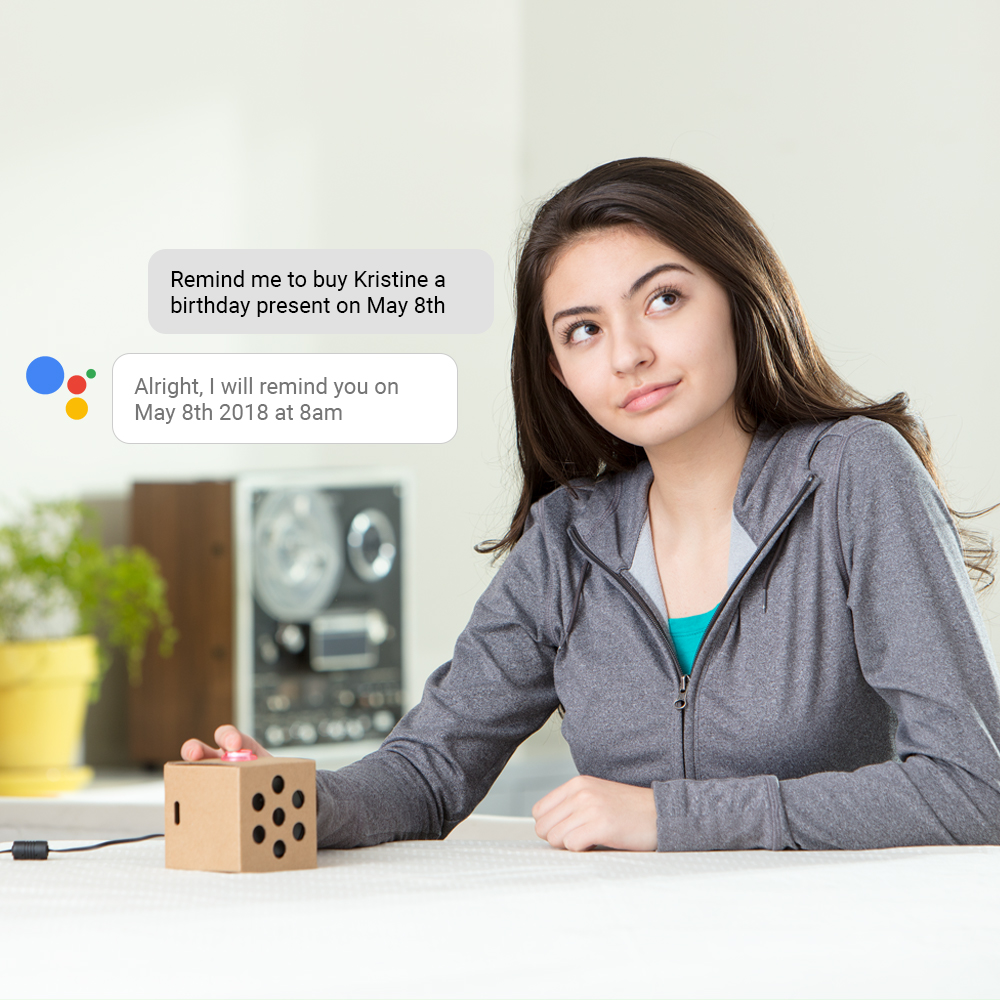 The form factor of the Pi Zero doesn’t allow for the additional breakouts found on the Voice Hat, like the transistors to drive high loads, but it does break out four of the Pi’s I/O pins, power, and ground so you can connect additional inputs and outputs. You may also eventually want to create a sturdier enclosure, as the included cardboard setup can wear out after a few reassemblies.
